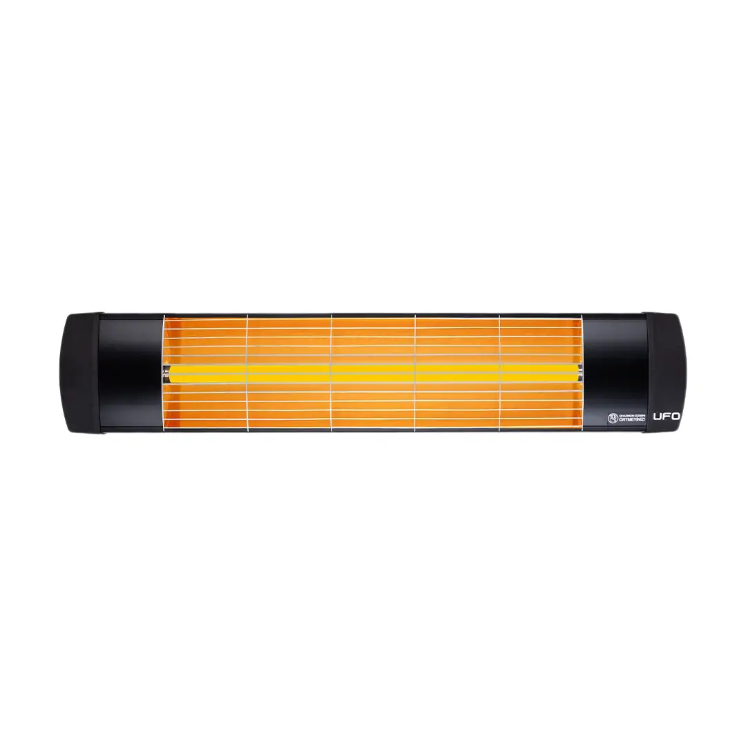 UFO Basic 2300 duvar tipi ısıtıcı, termostat kontrolüne sahip, hem yatay hem dikey kullanılabilen, su damlacıklarına ve dış ortama dayanıklı bir üründür.